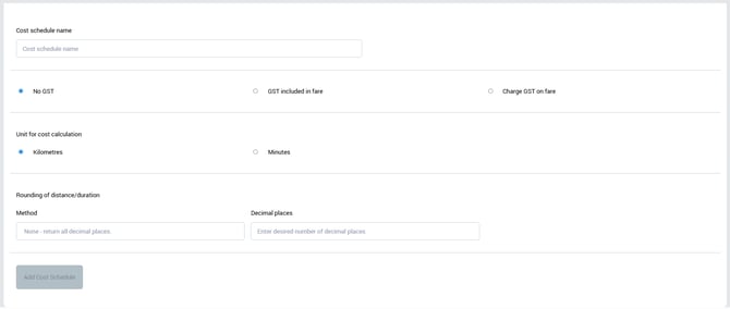 - Edit Schedule Settings: On the Rules page, click EDIT COST SCHEDULE (top right) to modify the schedule name, GST rules, or rounding settings.