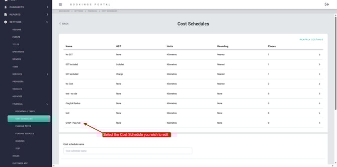 This article will detail the process around creating and editing Cost Schedules, and how to apply Cost Schedule changes to upcoming bookings.