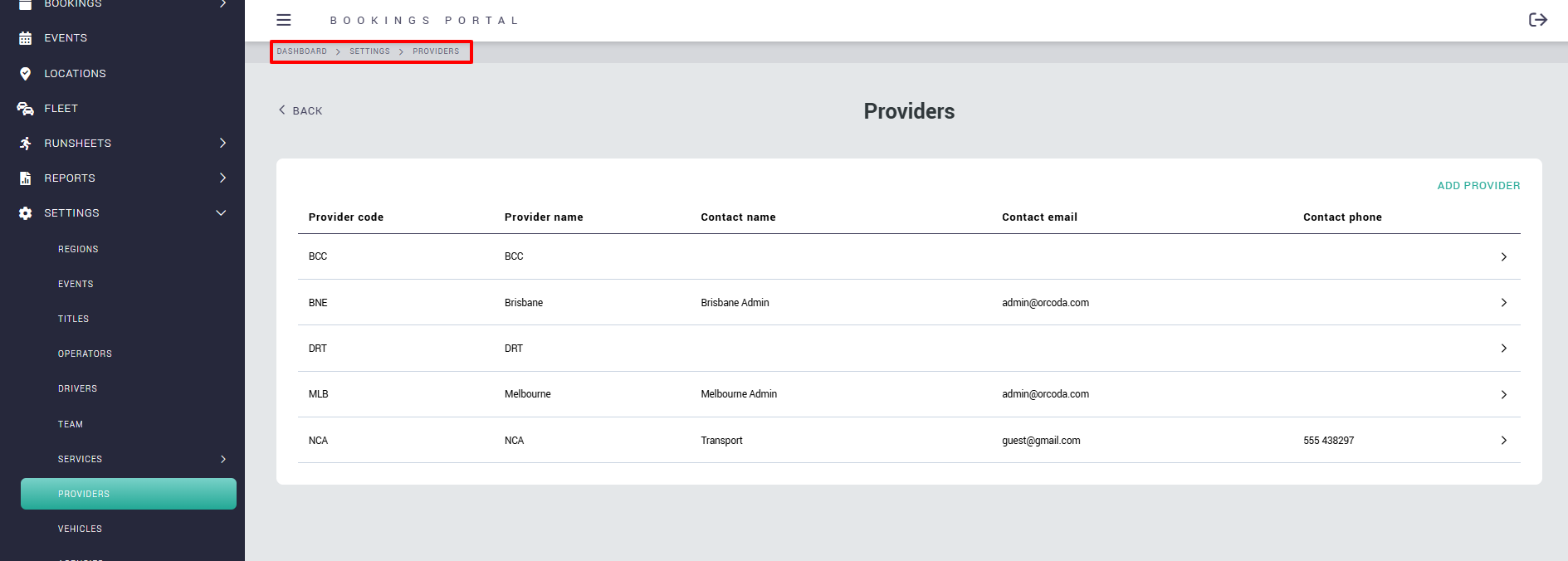 Users can configure what details are shown on the invoice from the Providers page under the Settings menu as shown below.