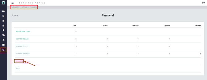 The Invoices section is located under the Financial subsection of Settings.