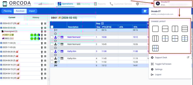 You can customize the Runsheet layout to suit your workflow by clicking the Layout button. This allows you to drag and drop various panels into your workspace.